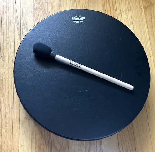 This Remo-brand frame drum also has a deep voice that compliments the other instruments. This drum is the one I use when I am on the road, as the big drum just won't fit in the van with the rest of the instruments.